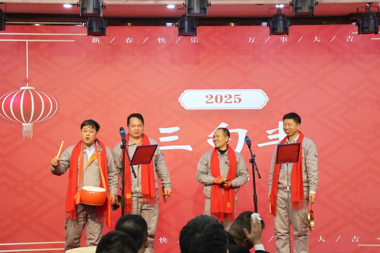 晚上19:28,迎新晚宴在歡笑和喧鬧中拉開序幕。燈光下,餐桌上,康德權(quán)的家人們積蓄了一年的辛勞一掃而空,臉帶笑意,喜上眉梢,共同慶祝新一年的到來。歡快的歌舞,幽默的小品,精彩的情景劇,激揚的詩歌朗誦,還有豐厚的獎品,康德權(quán)的家人們沐浴在喜悅的氣氛中,久久難以忘懷。